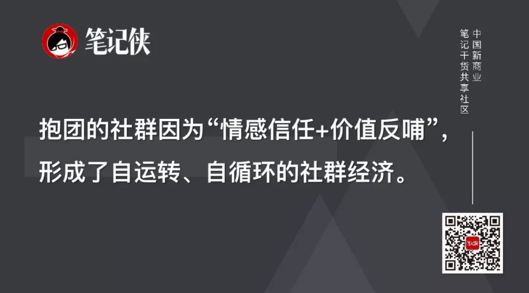 相对于某个产品或者某个品牌来说,这种抱团的社群因为“情感信任+价值反哺”,共同作用形成了自运转、自循环的范围经济系统,这就是社群经济。