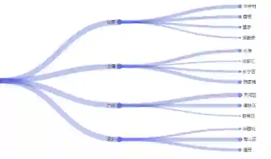 上图所示的是北上广深的加班区域情况,线条越粗意味着加班越猛。北京中关村,见证了中国互联网的发家,大厂比比皆是;广州海珠区,以科技行业为主;深圳南山区,则是国家级科技园。