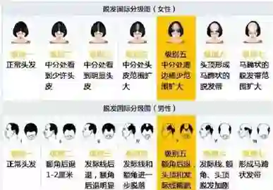 首先,得自行诊断一下到底自己算不算脱发。医学上如果每天脱发数量在100根以上,且连续超过一个月没有停止迹象,严重时部分区域稀疏,这种情况才被叫做“脱发”。符合标准的请按下图自测等级。