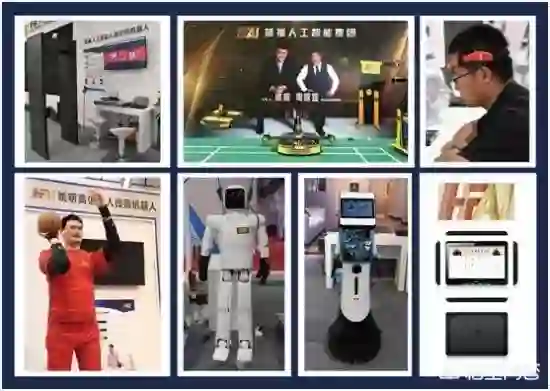 荷福人工智能集团有七款机器人亮相了2017世界机器人大会,分别是:基于多模态建模一比一高仿真姚明,可灵活投篮的姚明投篮高仿真机器人;采用仿人行走步态控制方式,行走流畅的双足直立行走机器人吴小欢;具有自主避障、人脸和语音识别等十大综合功能的多功能服务机器人小福;拥有高速运动目标捕捉、自主避障、多机协同等功能的羽毛球机器人;通过语音,就可以控制家里所有家居设备,基于云计算和大数据的知你、懂你、为你的智能家居机器人福娃;通过采集人的脑电波信号,将其转为控制指令,对虚拟人物、智能硬件进行控制的脑电波机器人;通过基于深度学习的人脸检测和跟踪算法,实现实时人脸抓取,目标人脸库搜索比对的人工智能人脸识别机器人。