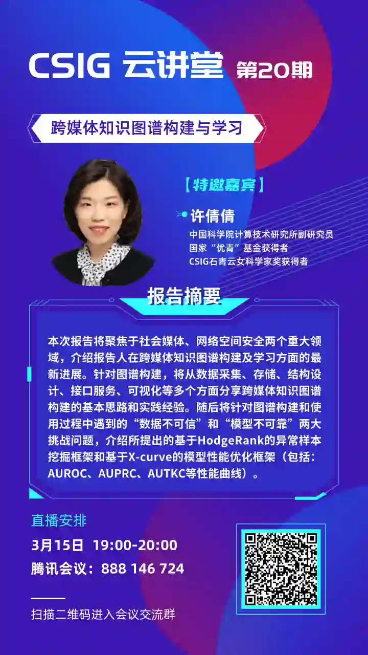 【CSIG云讲堂】3月15日19点,许倩倩主讲:跨媒体知识图谱构建与学习
