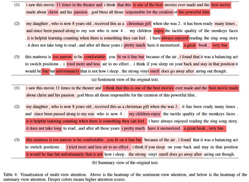 Conclusion: 本文的想法很直观,也符合联合任务的一贯做法,即启发式学习及更强的监督信号。并且实验结果也证明了文本摘要和情感分类确实有相关性,并且联合训练可以寻找到双方的更优解。在结果的解释性上有更大的优势。
