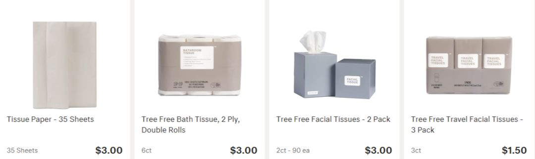 所以,Brandless 很多商品都只提供一两种选择,比如卫生纸,擦手用的卷纸就一款;擦脸用的则是抽纸和卷纸各一款。从消费者角度,这大大节约了“犹豫时间”,基本只要决定“买或不买”就行;对 Brandless 来说,也大幅度减轻了公司的供应链管理成本和压力。