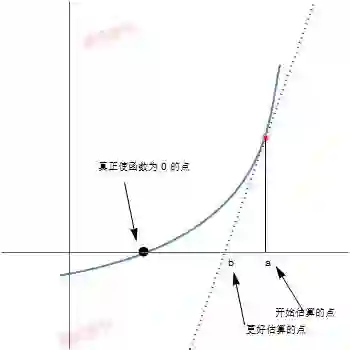 牛顿法假设a 是对方程 f(x) = 0 的解的一个近似. 如果令 b = a - f(a)f′(a)