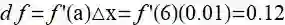 且 a=6, 则 f'(x)=2x, 所以 f(6)=12. 如果想知道当 x 从 6 增加 0.01时候, f(x)的变化, 于是有