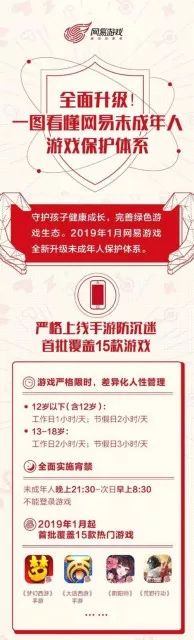 【TechWeb】1月17日消息,日前网易游戏发布公告称,从今年1月起,将在15款热门手游产品中陆续上线防沉迷系统,并进一步升级实名登记制度,未实名登记则无法进行充值。