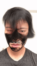 一旦我用面膜覆盖脸部的其余部分,滤镜就会停止工作。 有趣的是,我脸部的裸露区域似乎还是会被检测为面部,滤镜会继续执行该区域的面部样式转换。 你可以看到头部和面部的渲染效果像伊藤润二的恐怖故事一样闪烁。