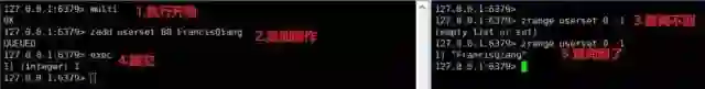 discard 清除在这个事务中放入队列的所有命令,即解除整个事务。