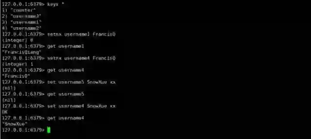 set key value xx 与前面相反,如果存在则设置成功,否则失败(相当于更新操作)