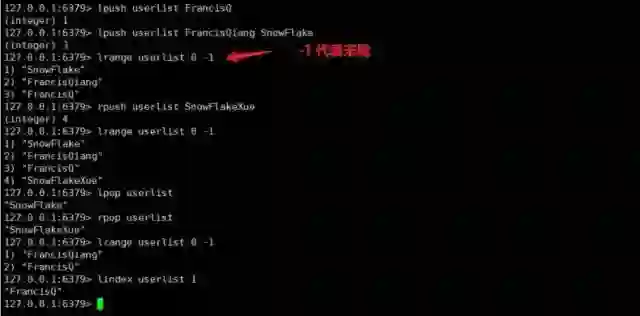 lindex key index 获取指定索引的元素 O(n)谨慎使用