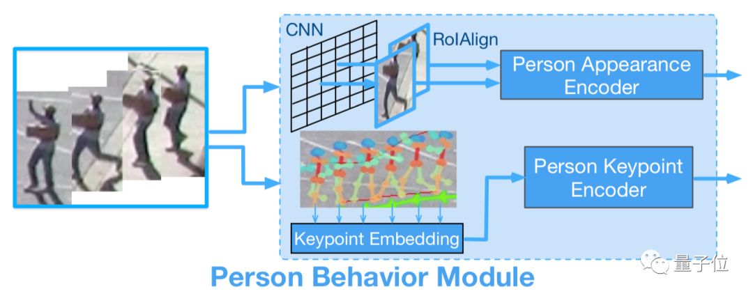 这个模块负责对场景中每个人的图像信息进行编码,除了标记人的轨迹点以外,还要对身体活动进行建模。