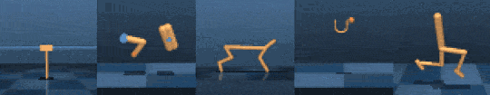 步行者任务,模拟机器人一开始会躺在地上,必须使它学会站起来并走路。