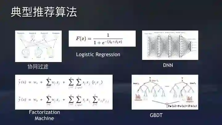 要将这三者匹配起来,是一个很复杂的数学问题,常用的模型就有好几种。比如传统的协同过滤模型,监督学习算法Logistic Regression模型,基于深度学习的模型,Factorization Machine和GBDT等。