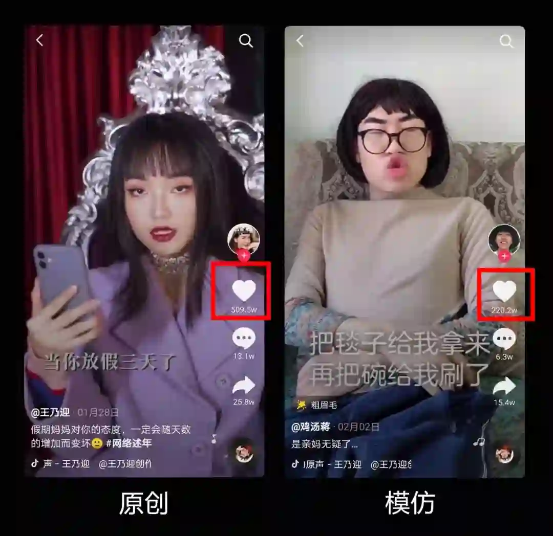 这是单条内容的创作,单条模仿只能是短期打造爆款,你不可能长期都靠模仿,不原创。没有原创的账号没有生命力,也是为所有内容创作者所不耻的。