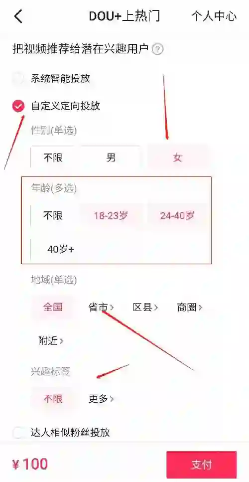 花钱买DOU+,可以上热门。DOU+是抖音官方的平台,最低100元就能投,投放时可以选择人群的性别、年龄、地区等。花的钱越多,效果越好。至于投入产出比如何,那就要看经验了。