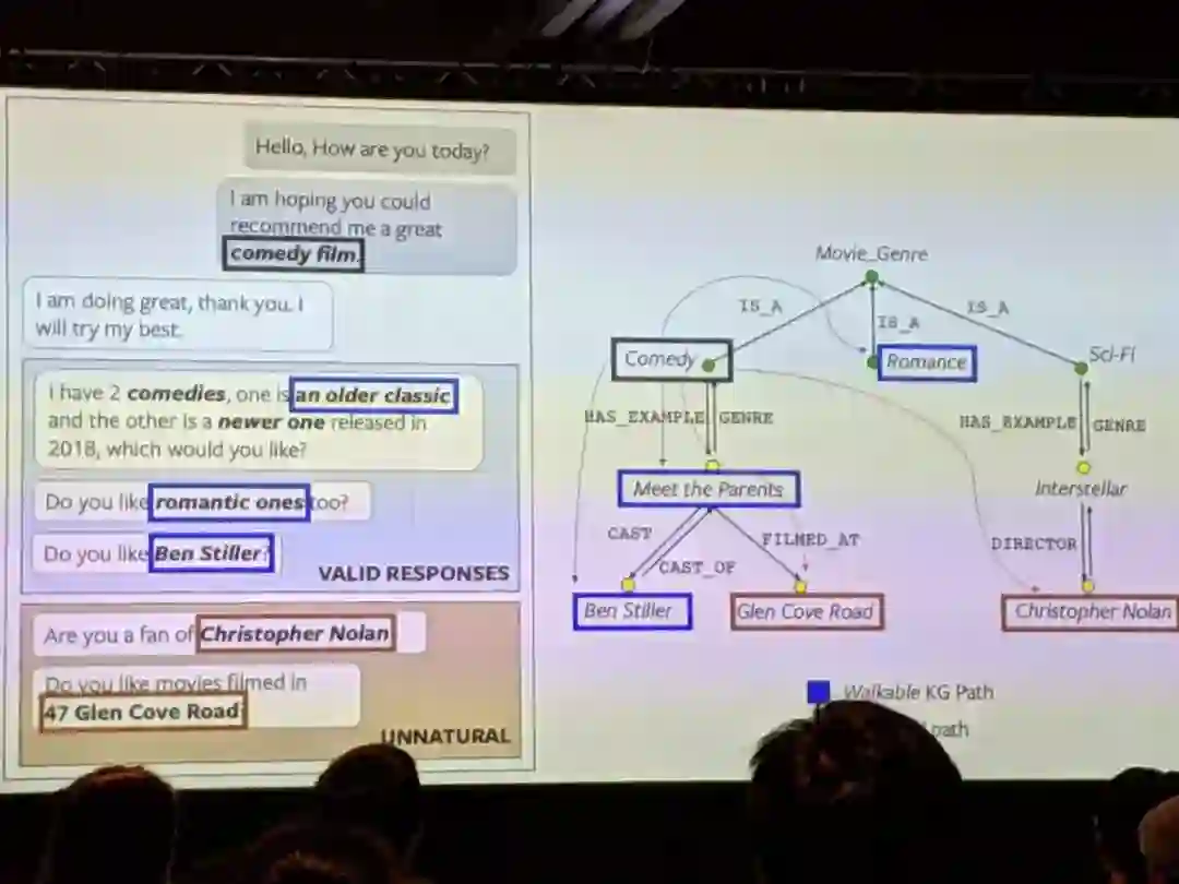 1、关于集成知识的趋势,ACL主席周明在大会主旨演讲中已经表达的很清楚了。演讲中,他强调了将知识图谱、推理和背景纳入对话系统的重要性。我想补充的一点是,知识图谱也将同时提高agent对话的可解释性。