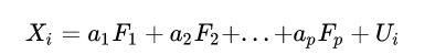 这里的Fj(j=1,2,....p) 就是我们说的因子,Ui 则指的是第i个观测变量独有的部分(无法被因子解释)。