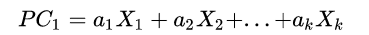 主成分是初始变量的线性组合,用于替代初始变量并尽可能保留初始信息。如第一主成分: