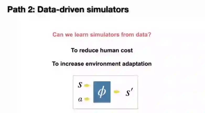 但是同时我们还在想,如果模拟器一直是人工设置的,那它会面临很多问题。第一个就是在人工设置的过程中人力开销是很大的,另外一个就是人工设置的模拟器都定下来以后不能很好地跟随环境的变化而变化。所以如果我们能够从数据上面还原模拟器,就可以缓解这两个问题。