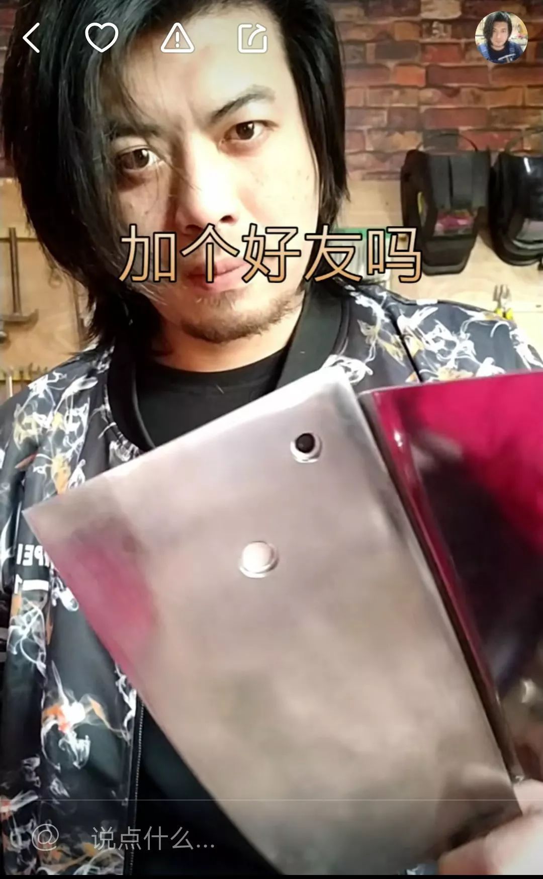 手工耿今年30岁了,想着“三十而立,应该立一下了”,回乡后决定把全部精力都用在琢磨视频上。他经常从电影或各种搞笑内容中找灵感,在视频的节奏感、音乐、情节走向中加入设计。“我记得以前看快手,有人用菜刀打了另一个东西。菜刀很普通,搞一下就能一下子有档次的感觉。我说为什么不做个手机壳呢,还是平面的是不是,拿起来也特别霸气。”这个创意终于让他走红,再加上被大众媒体报道,手工耿成功破圈。