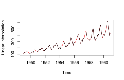 na.interpolation(mydata) # Linear Interpolation