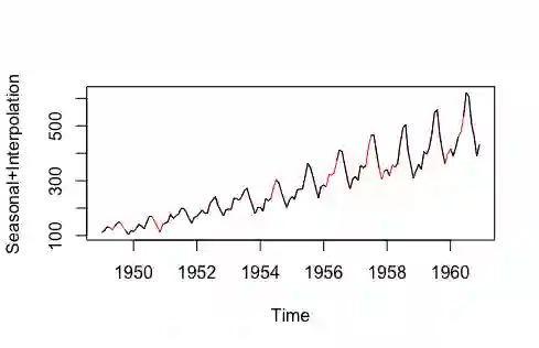 注:以上数据来自imputeTS库的tsAirgap;插补数据被标红。