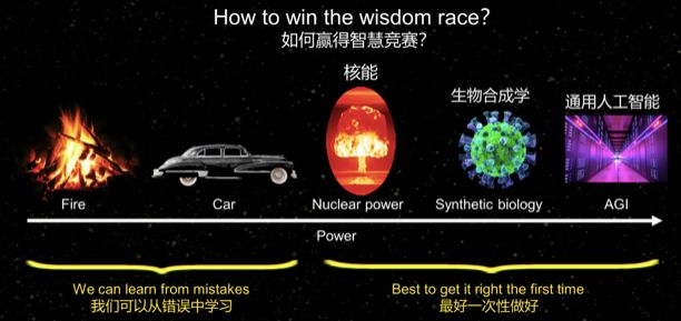 Tegmark表示,如果考虑未来可能面临的挑战,这会是人类历史上犯下的一个巨大的错误。但是因为技术是如此的有力,我们在实现技术能力的道路上会犯下很多错误。我们应该如何引导技术的发展,为人类创造一个非常美好的未来,这是美国、中国以及所有国家都应该思考的问题。
