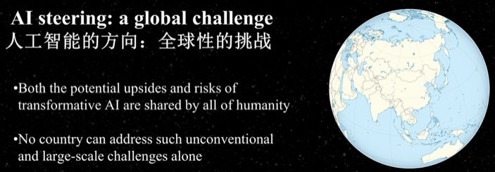 人工智能的方向其实是一个全球性的挑战,就像气候变化一样,这些问题让单个国家解决可能是非常难。我认为中国实际上以一个非常独特的地位在引领AI的发展,不仅是让AI更加强大,也让AI带来好处。为什么这样说呢?因为中国是全球AI技术的引领者,中国在这个领域的研究不仅关注让AI更加强大,而且保证AI是安全和有益于人类的。