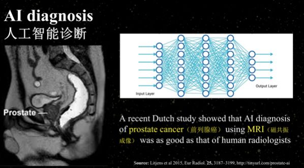 所有的这些进步实际上会带来一些商业化的应用,比如关于医疗,利用AI去诊断前列腺癌、肺癌和眼部疾病方面,甚至做外科手术,AI可以帮助我们实现目的。