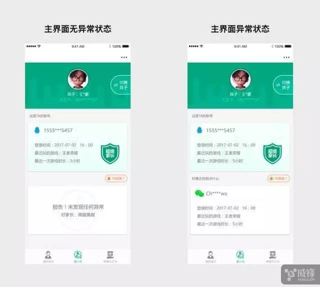届时,家长在“成长守护平台”微信服务号添加孩子账号、验证个人手机号码以及孩子shen fen zheng 信息,开通“超级家长”功能,并为已关联的孩子账号绑定由腾讯和中国联通合作推出的“大王卡”,即可使用“查询小号”服务。开通服务后,家长可查询孩子使用“大王卡”的手机设备最近7天(不含当日)的“小号”登录情况。(注:该功能目前仅对安卓系统设备有效。)