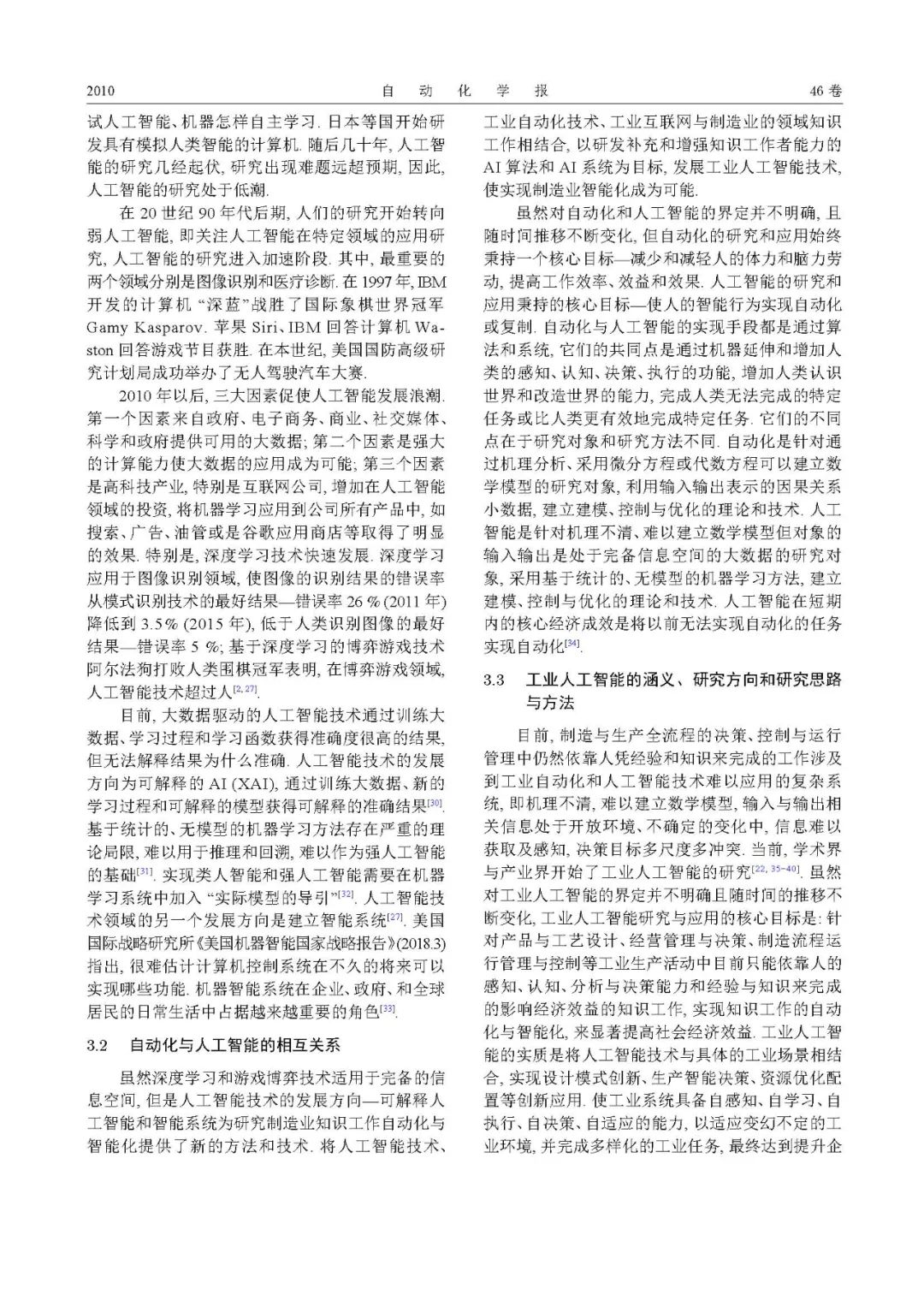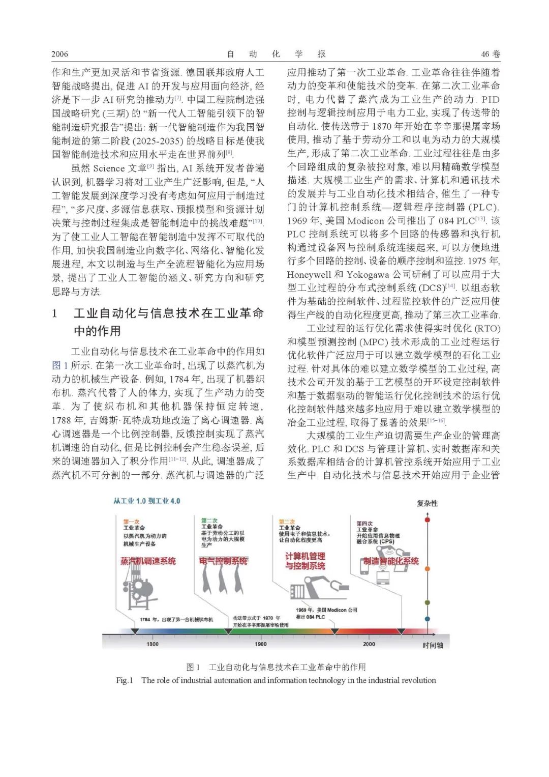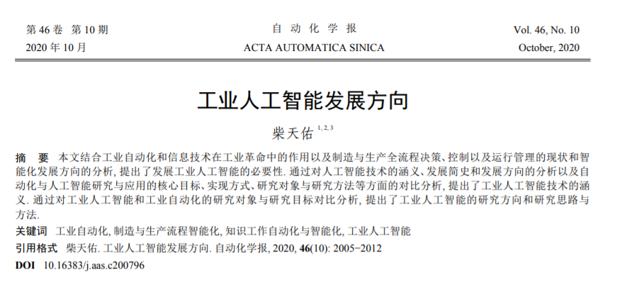 本文结合工业自动化和信息技术在工业革命中的作用以及制造与生产全流程决策、控制以及运行管理的现状和智 能化发展方向的分析, 提出了发展工业人工智能的必要性. 通过对人工智能技术的涵义、发展简史和发展方向的分析以及自 动化与人工智能研究与应用的核心目标、实现方式、研究对象与研究方法等方面的对比分析, 提出了工业人工智能技术的涵 义. 通过对工业人工智能和工业自动化的研究对象与研究目标对比分析, 提出了工业人工智能的研究方向和研究思路与方法。