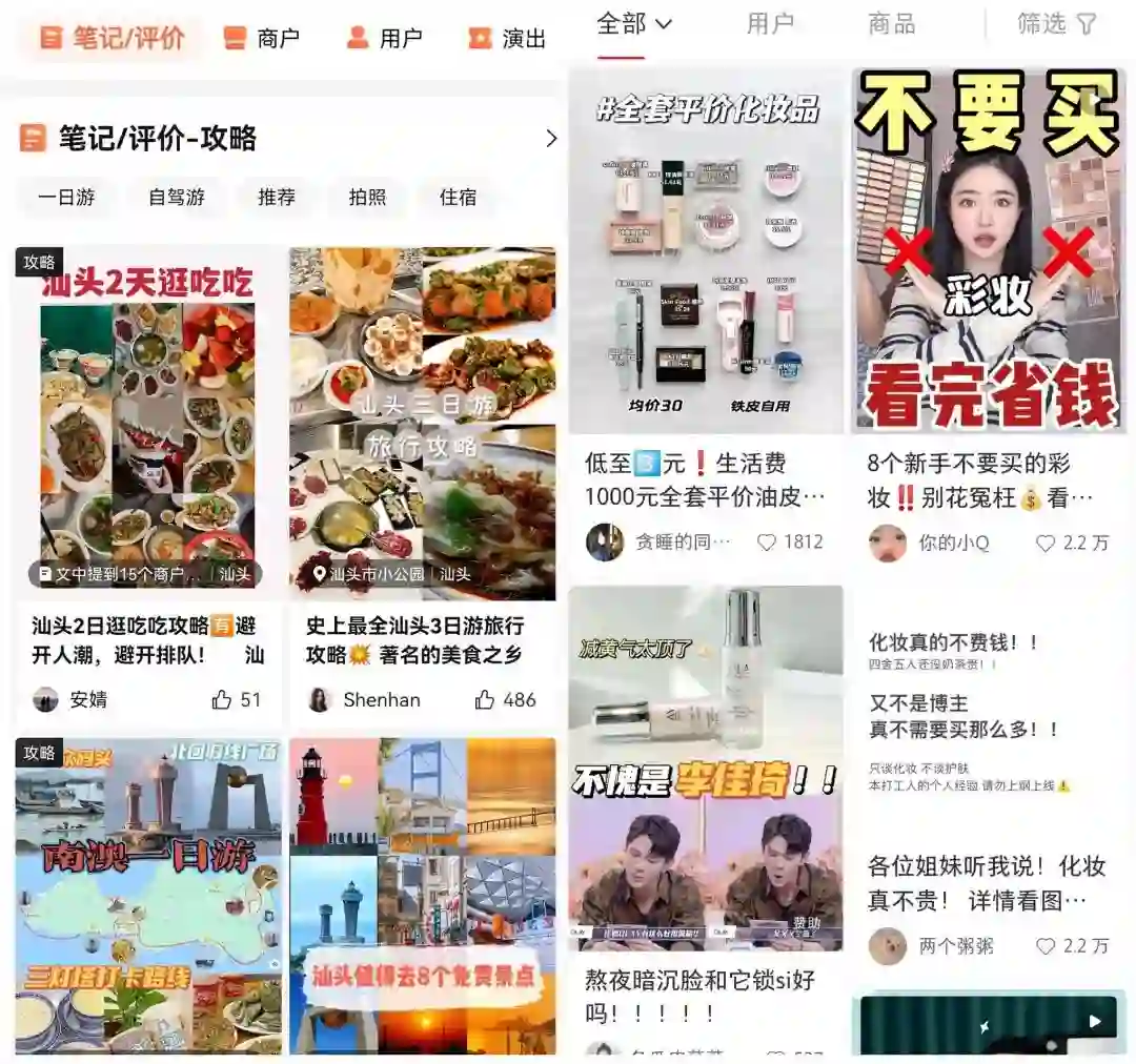 比如小红书,从分享海淘攻略笔记到各类产品的种草推广,用户的各类点评笔记搭建起了小红书的内容体系,也为其电商发展打下良好的基础。