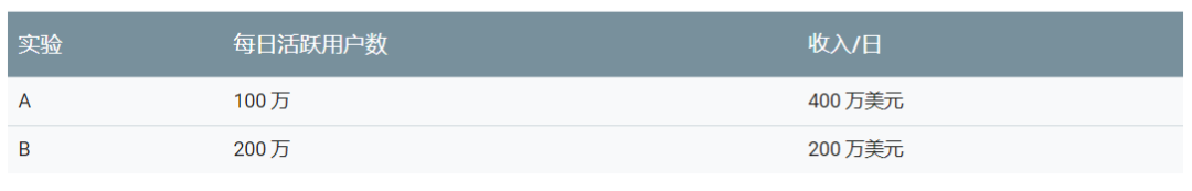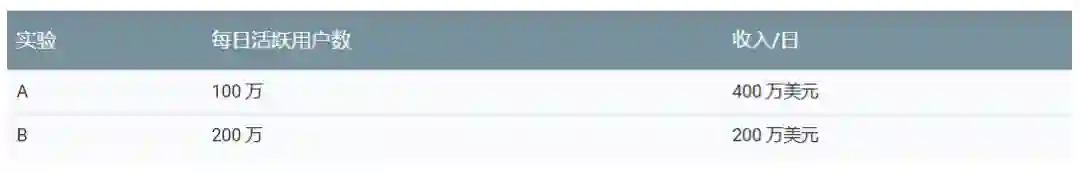 这些可在 A/B 测试中衡量的指标本身仅代表了以下更长期目标:让用户满意、增加用户数量、让合作伙伴满意以及实现盈利,进一步,您还可以认为它们代表了发布优质且实用的产品,以及五年后公司繁荣发展。