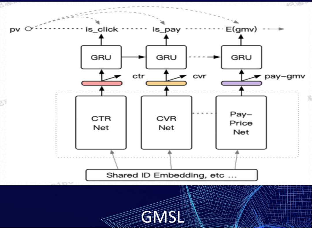 另外一类做法是做建模目标关系,像阿里巴巴提出的ESMM,然后还有lazada提出的这种GMSL的模型。这四个图简单给大家介绍一下。