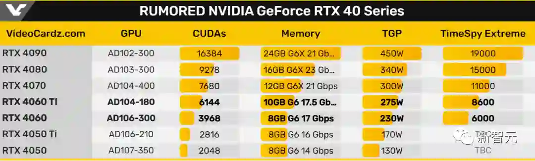 从国外媒体预测的主要参数和性能看,新旗舰RTX 4090已经比RTX 3090 Ti高出多达66%,RTX 4080几乎是RTX 3080的两倍,RTX 4070则几乎相当于RTX 3090或对面的RX 6900 XT了。