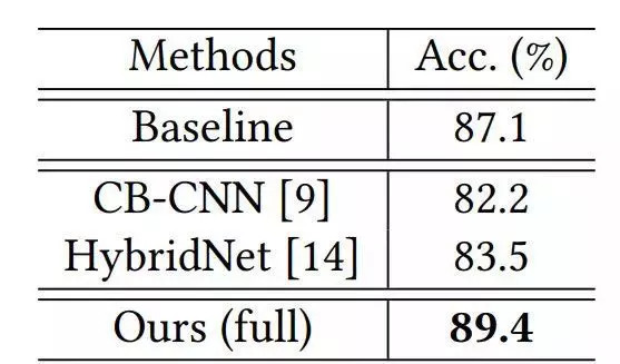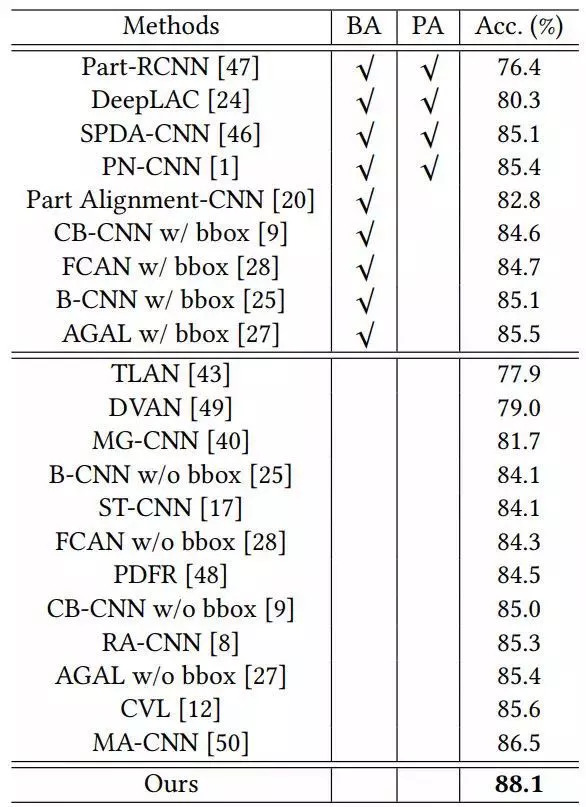 表 2. HSE 框架与其它最先进的算法在 CUB 数据集上的首位识别准确率对比。