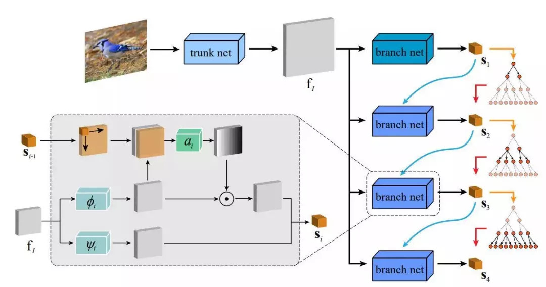 细粒度识别一般需要模型识别非常精细的子类别,它基本上就是同时使用图像全局信息和局部信息的分类任务。在本论文中,研究者们提出了一种新型层次语义框架,其自顶向下地由全局图像关注局部特征或更具判别性的区域。