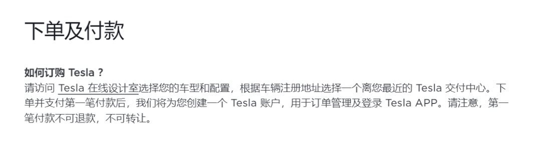 特斯拉官网显示,第一笔付款不可退款不可转让