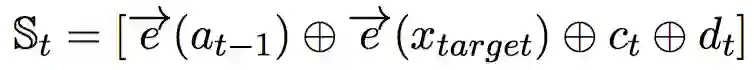 上的概率分布。通过将解码后的输出与真实标签进行比较,预测误差可以反向传播以更新编解码器网络的参数。然而,这种方法在我们的设置中并不适用,因为我们没有任何外部语法资源的作为有监督信息。为了能够训练转移动作生成器,我们采用强化学习框架,通过构建策略网络,并通过对策略网络得到的状态分布进行采样来生成转移动作。我们将当前的状态