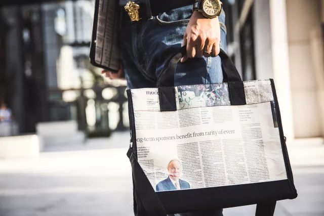 FT商务手包采用英国《金融时报》原版报纸制作,添加防水覆膜工艺,精美耐用。