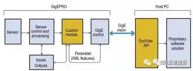 图3:digMAR公司开发的用于实时web检测的嵌入到相机中的3D视觉系统架构,采用了NET公司集成FPGA的GigE相机。这种开放式相机概念为用户提供了一种实施专有算法的开发平台。