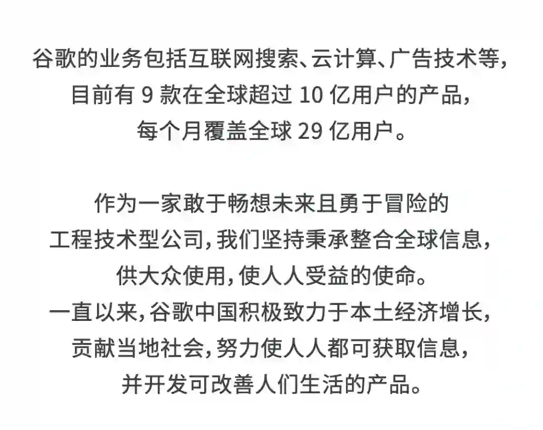 谷歌公司(Google Inc.)成立于1998年9月4日,由拉里·佩奇和谢尔盖·布林共同创建,被公认为全球最大的搜索引擎。公司总部称为“Googleplex”,位于美国加州圣克拉拉县的芒廷维尤。业务包括互联网搜索、云计算、广告技术等,同时开发并提供大量基于互联网的产品与服务,其主要利润来自于AdWords等广告服务。