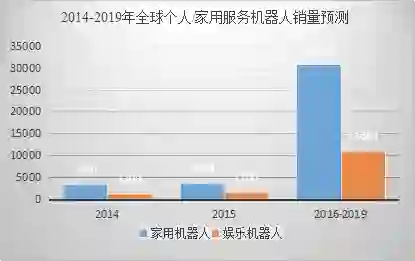2014-2019年全球个人/家用服务机器人销量预测(单位:千台)