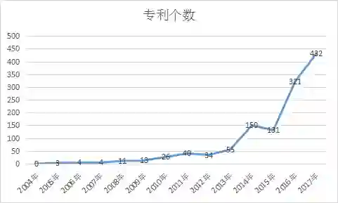 2004-2017 年服务机器人相关专利公开数量变化图(单位:个)