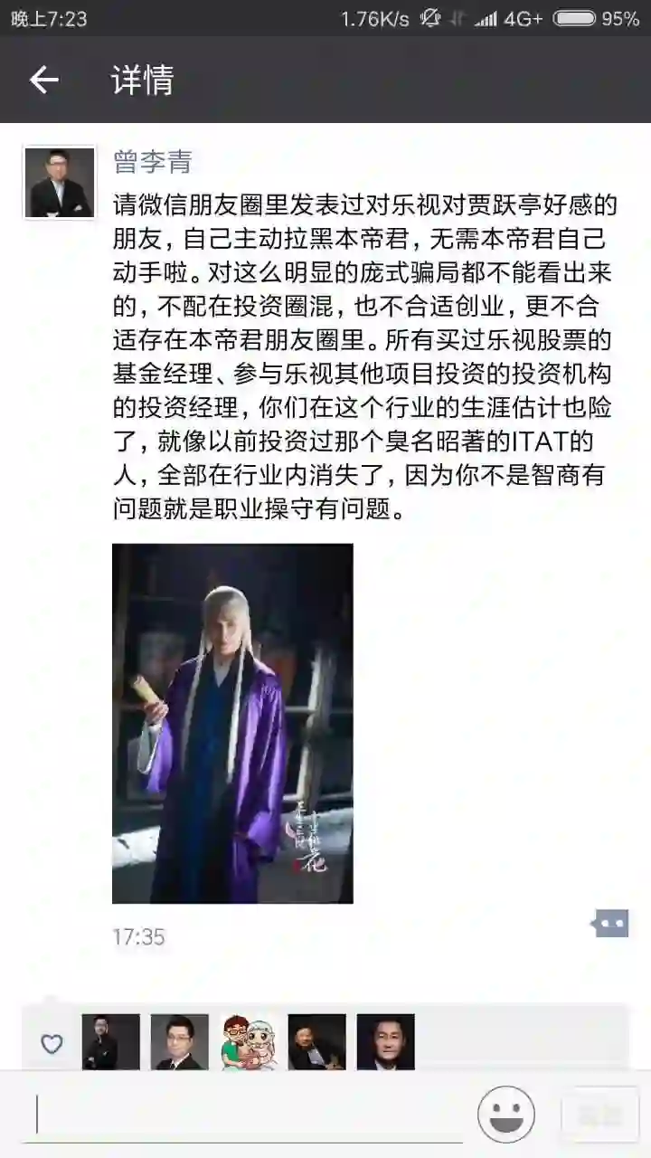 “对这么明显的庞氏骗局都看不出来的,不配在投资圈混,也不适合创业。”7月16日下午,腾讯联合创始人曾李青通过个人朋友圈发表了对乐视的看法。可以看到,腾讯董事会主席马化腾点了赞。