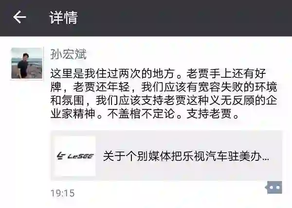 孙宏斌发朋友圈支持贾跃亭:老贾手上还有好牌,不盖棺不定论