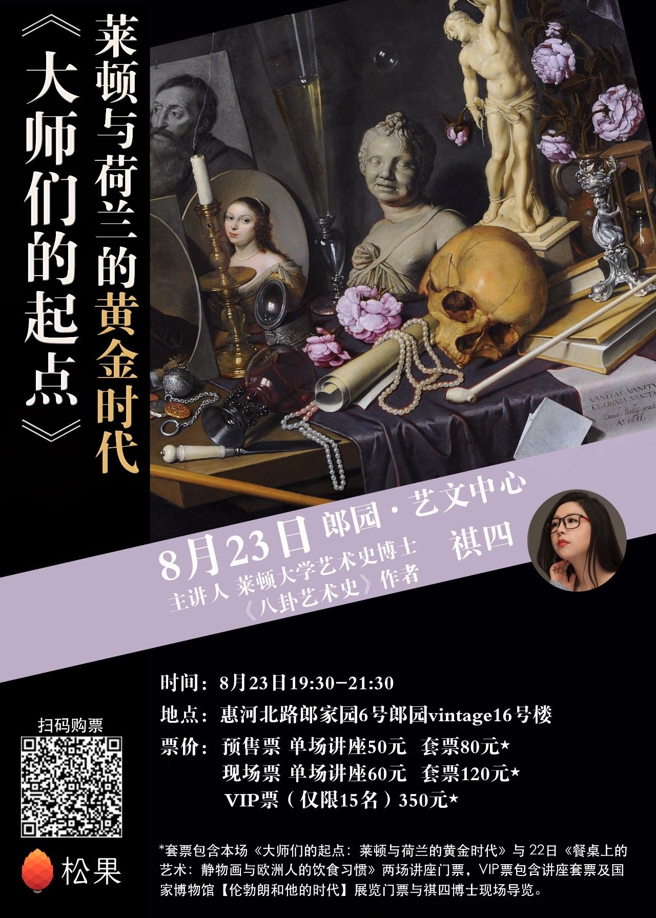 “三联松果生活携手艺术史学者祺四策划一场艺术活动周:两场艺术讲座+一次VIP导览。作为莱顿大学艺术史博士的她将为你带来权威的莱顿收藏讲解,邀请大家在夏天的尾巴,一起体验一场独特的艺术之旅。”