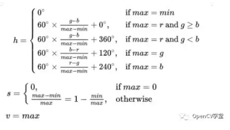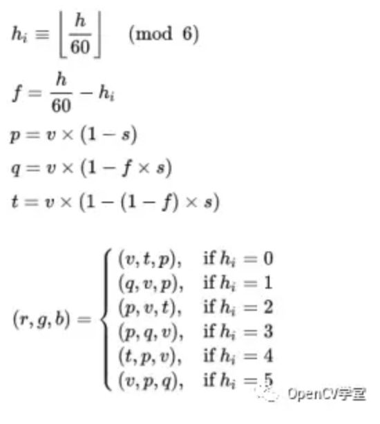 为什么会出现这种情况?原因如下: 我们以RGB和HSV颜色空间为例,首先来看下HSV和RGB之间的转换公式: