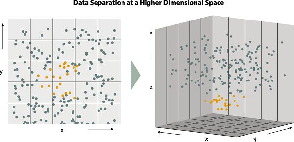 Machine learning在更高维空间的数据分离。图片来源:Juarez-Orozco博士