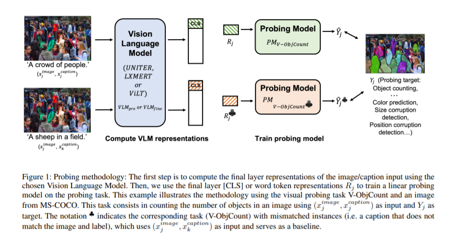 近年来,由于基于Transformer的视觉-语言模型的发展,联合文本-图像嵌入得到了显著的改善。尽管有这些进步,我们仍然需要更好地理解这些模型产生的表示。在本文中,我们在视觉、语言和多模态水平上比较了预训练和微调的表征。为此,我们使用了一组探测任务来评估最先进的视觉语言模型的性能,并引入了专门用于多模态探测的新数据集。这些数据集经过精心设计,以处理一系列多模态功能,同时最大限度地减少模型依赖偏差的可能性。虽然结果证实了视觉语言模型在多模态水平上理解颜色的能力,但模型似乎更倾向于依赖文本数据中物体的位置和大小的偏差。在语义对抗的例子中,我们发现这些模型能够精确地指出细粒度的多模态差异。最后,我们还注意到,在多模态任务上对视觉-语言模型进行微调并不一定能提高其多模态能力。我们提供所有的数据集和代码来复制实验。